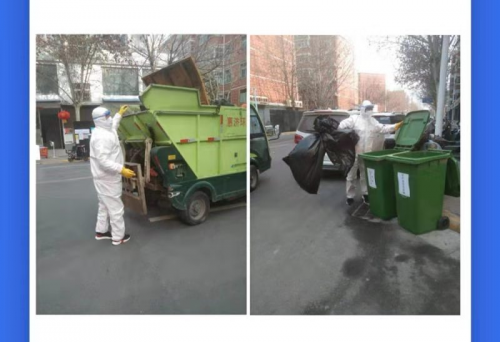 對疫情隔離區的垃圾等實行專車、專人收集、立即處理,環衛設施落實消毒措施等。環衛工人袁保同專門對20個疫情隔離社區的垃圾清運工作,每天上下午共兩輪。
